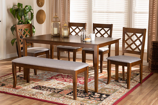 Baxton Studio Andor Modern and Contemporary Gre... Baxton Studio Andor Modern and Contemporary Grey Fabric Upholstered and Walnut Brown Finished Wood 6-Piece Dining Set