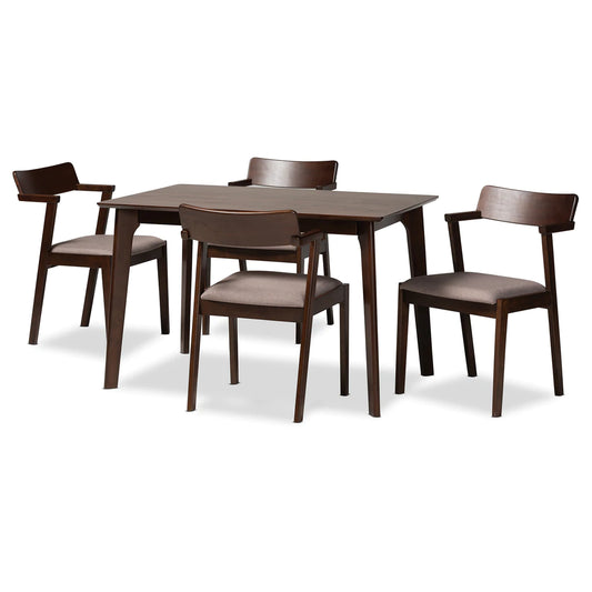 Baxton Studio Ariane Modern and Contemporary Gr... Baxton Studio Ariane Modern and Contemporary Grey Fabric Upholstered and Walnut Brown Finished Wood 5-Piece Dining Set