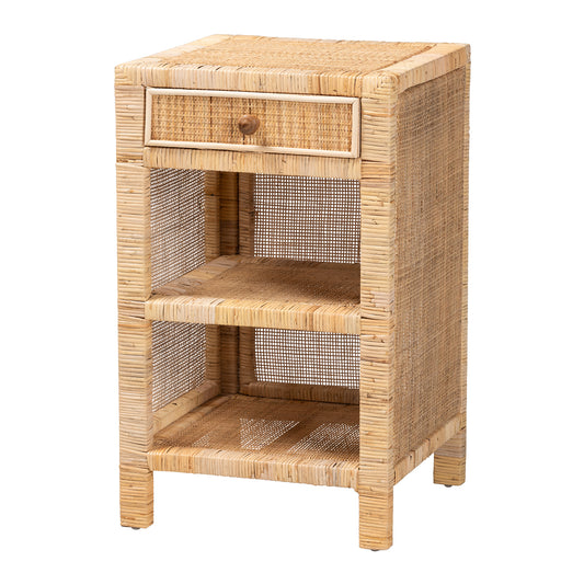 Baxton Studio bali & pari Rosina Bohemian Natur... Baxton Studio bali & pari Rosina Bohemian Natural Rattan 1-Drawer Nightstand