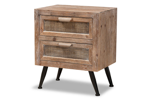 Baxton Studio Calida Mid-Century Modern Whitewa... Baxton Studio Calida Mid-Century Modern Whitewashed Natural Brown Finished Wood and Rattan 2-Drawer Nightstand
