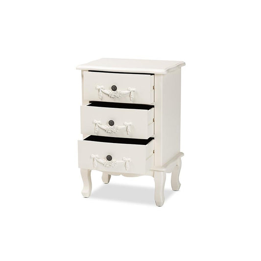 Baxton Studio Gabrielle Traditional French Coun... Baxton Studio Gabrielle Traditional French Country Provincial White-Finished 3-Drawer Wood Nightstand