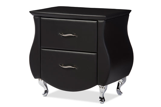 Baxton Studio Stella Crystal Tufted Black Uphol... Baxton Studio Stella Crystal Tufted Black Upholstered Modern Nightstand