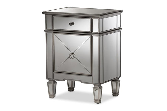 Baxton Studio Leonie Modern Transitional French... Baxton Studio Leonie Modern Transitional French Brushed Silver Finished Wood and Mirrored Glass 2-Drawer Nightstand