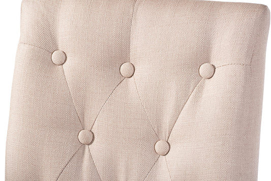 Baxton Studio Roxy Mid-Century Modern Walnut Br... Baxton Studio Roxy Mid-Century Modern Walnut Brown Finish Wood and Light Beige Fabric Upholstered Button-Tufted High-Back Chair