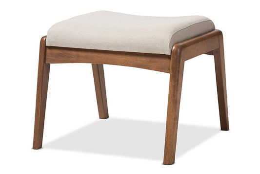 Baxton Studio Roxy Mid-Century Modern Walnut Wo... Baxton Studio Roxy Mid-Century Modern Walnut Wood Finishing and Light Beige Fabric Upholstered Ottoman
