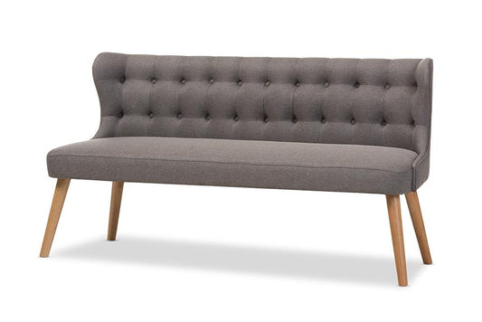 Baxton Studio Melody Mid-Century Modern Grey Fa... Baxton Studio Melody Mid-Century Modern Grey Fabric and Natural Wood Finishing 3-Seater Settee Bench