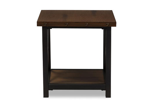 Baxton Studio Herzen Rustic Industrial Style An... Baxton Studio Herzen Rustic Industrial Style Antique Black Textured Finished Metal Distressed Wood Occasional End Table
