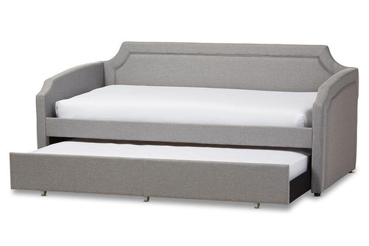 Baxton Studio Raymond Modern and Contemporary G... Baxton Studio Raymond Modern and Contemporary Grey Fabric Nail Heads Trimmed Sofa Twin Daybed with Roll-Out Trundle Guest Bed