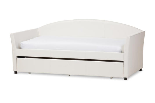 Baxton Studio Vera Modern and Contemporary Whit... Baxton Studio Vera Modern and Contemporary White Faux Leather Upholstered Curved Sofa Twin Daybed with Roll-Out Trundle Guest Bed
