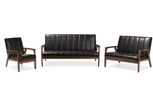 Baxton Studio Nikko Mid-century Modern Scandina... Baxton Studio Nikko Mid-century Modern Scandinavian Style Dark Brown Faux Leather 3 Pieces Living Room Sets