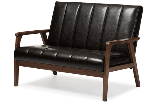 Baxton Studio Nikko Mid-century Modern Scandina... Baxton Studio Nikko Mid-century Modern Scandinavian Style Dark Brown Faux Leather Wooden 2-Seater Loveseat