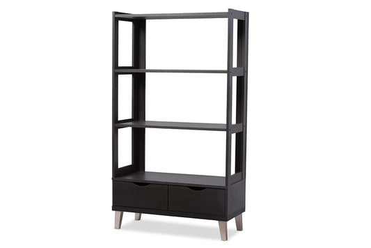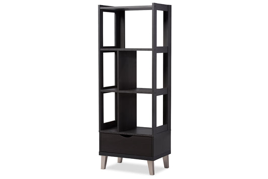 Baxton Studio Kalien Modern and Contemporary Da... Baxton Studio Kalien Modern and Contemporary Dark Brown Wood Leaning Bookcase with Display Shelves and One Drawer