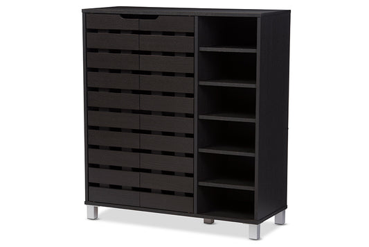 Baxton Studio Shirley Modern and Contemporary D... Baxton Studio Shirley Modern and Contemporary Dark Brown Wood 2-Door Shoe Cabinet with Open Shelves