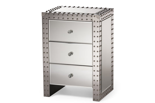 Baxton Studio Chevron Modern and Contemporary H... Baxton Studio Chevron Modern and Contemporary Hollywood Regency Glamour Style Mirrored 3-Drawers Nightstand Bedside Table