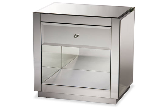 Baxton Studio Rochadh Modern and Contemporary H... Baxton Studio Rochadh Modern and Contemporary Hollywood Glamour Style 1-drawer and 1-shelf Nightstand and Bedside Table