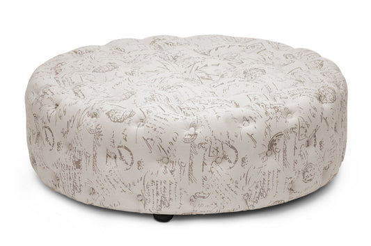 Baxton Studio Cardiff Beige Script Print Modern... Baxton Studio Cardiff Beige Script Print Modern Tufted Ottoman
