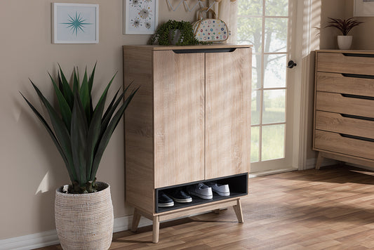 Baxton Studio Fella Mid-Century Modern Two-Tone... Baxton Studio Fella Mid-Century Modern Two-Tone Oak and Grey Wood Shoe Cabinet
