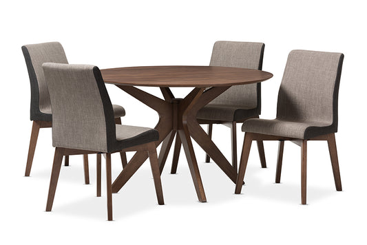 Baxton Studio Kimberly Mid-Century Modern Walnu... Baxton Studio Kimberly Mid-Century Modern Walnut Wood Round 5-Piece Dining Set
