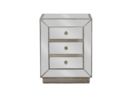 Baxton Studio Currin Contemporary Mirrored 3-Dr... Baxton Studio Currin Contemporary Mirrored 3-Drawer Nightstand