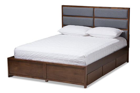 Baxton Studio Macey Modern and Contemporary Dar... Baxton Studio Macey Modern and Contemporary Dark Grey Fabric Upholstered Walnut Finished King Size Storage Platform Bed