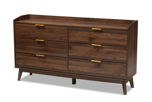 Baxton Studio Lena Mid-Century Modern Walnut Br... Baxton Studio Lena Mid-Century Modern Walnut Brown Finished 6-Drawer Wood Dresser