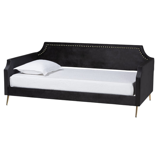 Baxton Studio Pita Traditional Glam and Luxe Bl... Baxton Studio Pita Traditional Glam and Luxe Black Velvet and Gold Metal Twin Size Daybed