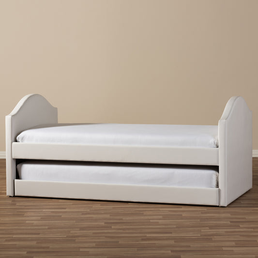 Baxton Studio Alessia White Faux Leather Uphols... Baxton Studio Alessia White Faux Leather Upholstered Daybed with Guest Trundle Bed