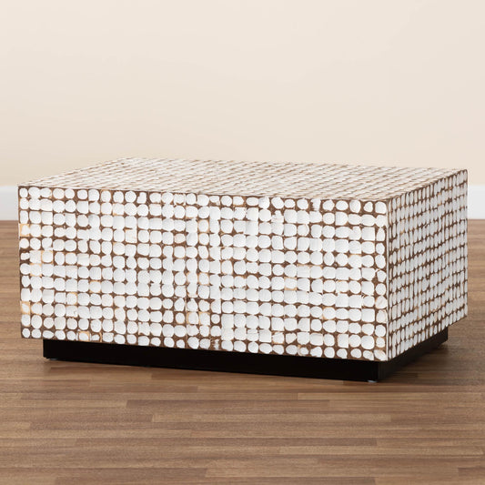 Baxton Studio bali & pari Nitza Bohemian White ... Baxton Studio bali & pari Nitza Bohemian White Coconut Shell and Acacia Wood Coffee Table