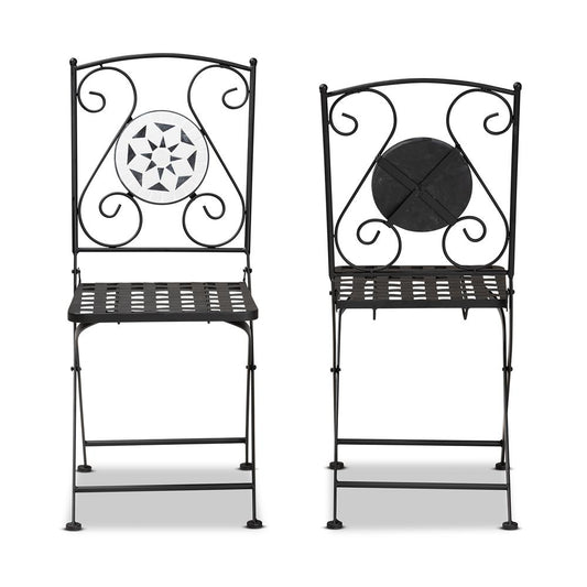 Baxton Studio Julius Modern and Contemporary Bl... Baxton Studio Julius Modern and Contemporary Black Finished Metal and Multi-Colored Glass 2-Piece Outdoor Dining Chair Set