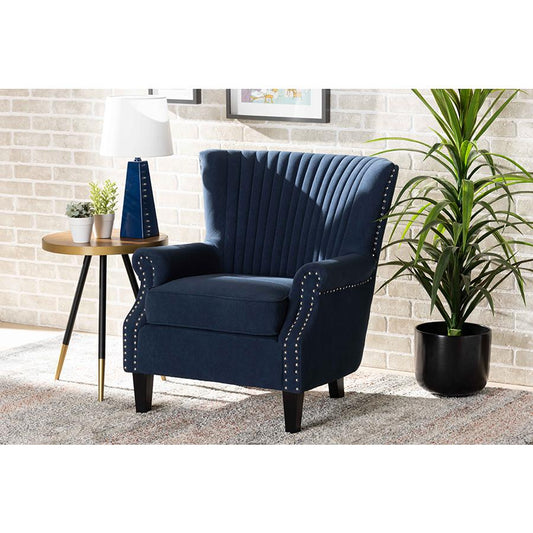 Baxton Studio Wilhelm Classic and Traditional N... Baxton Studio Wilhelm Classic and Traditional Navy Blue Velvet Fabric Upholstered and Dark Brown Finished Wood Armchair