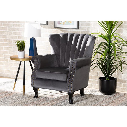 Baxton Studio Relena Classic and Traditional Gr... Baxton Studio Relena Classic and Traditional Grey Velvet Fabric Upholstered and Dark Brown Finished Wood Armchair
