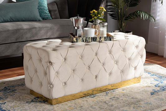 Baxton Studio Corrine Glam and Luxe Beige Velve... Baxton Studio Corrine Glam and Luxe Beige Velvet Fabric Upholstered and Gold PU Leather Ottoman