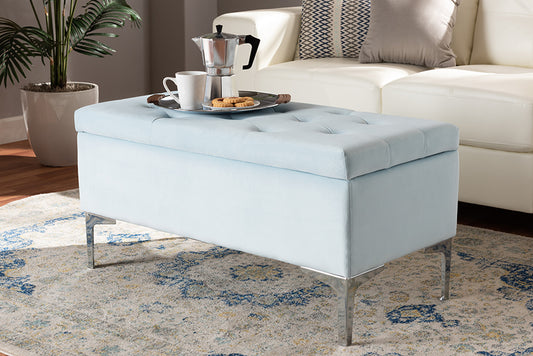 Baxton Studio Mabel Modern and Contemporary Tra... Baxton Studio Mabel Modern and Contemporary Transitional Light Blue Velvet Fabric Upholstered Silver Finished Storage Ottoman