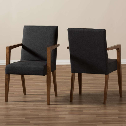 Baxton Studio Nexus Mid-Century Modern Walnut W... Baxton Studio Nexus Mid-Century Modern Walnut Wood Finishing Dark Grey Fabric Dining Armchair (Set of 2)