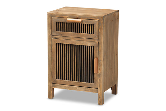 Baxton Studio Clement Rustic Transitional Mediu... Baxton Studio Clement Rustic Transitional Medium Oak Finished 1-Door and 1-Drawer Wood Spindle Nightstand