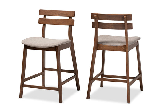 Baxton Studio Larine Modern and Contemporary Li... Baxton Studio Larine Modern and Contemporary Light Grey Fabric Upholstered Walnut Finished 2-Piece Wood Counter Stool Set