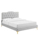 Wingback Beds: Known for their slightly more dramatic look, wingback queen headboard beds add an extra edge to the minimalist flat headboard designs. They come with many variations including upholstered, padded, button-tufted and diamond design detailing, etc.