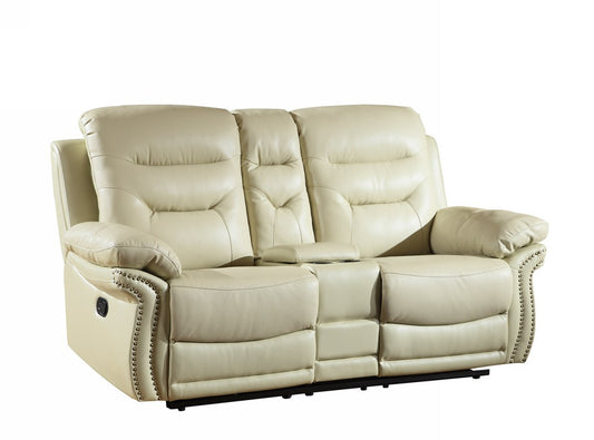 41" Stylish Beige Leather Console Loveseat By H... 41" Stylish Beige Leather Console Loveseat By Homeroots