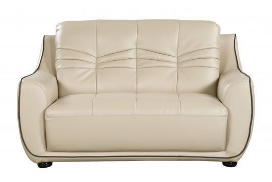 37" Modern Beige Leather Loveseat By Homeroots 37" Modern Beige Leather Loveseat By Homeroots