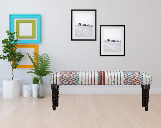 Rectangular Indian Mango WoodLight Brown And Gr... Rectangular Indian Mango WoodLight Brown And Grey W Jute Patterned Top Accent Bench By Homeroots