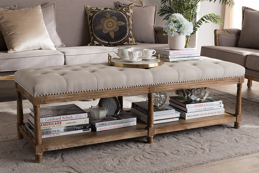 Safavieh Rocha 19''H French Brasserie Tufted Tr... Safavieh Rocha 19''H French Brasserie Tufted Traditional Rustic Wood Bench - Beige