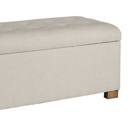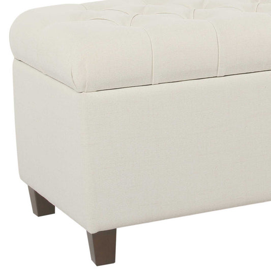 Fabric Upholstered Button Tufted Wooden Bench W... Fabric Upholstered Button Tufted Wooden Bench With Hinged Storage, White And Brown By Benzara