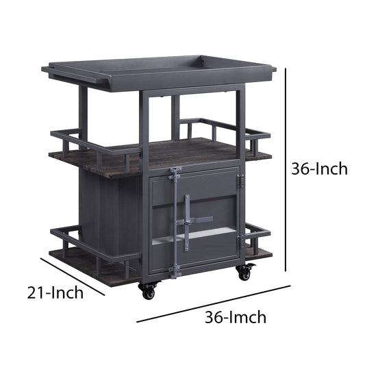Metal Serving Cart With 1 Door Storage And 2 Tr... Metal Serving Cart With 1 Door Storage And 2 Tray Shaped Shelves, Gray By Benzara