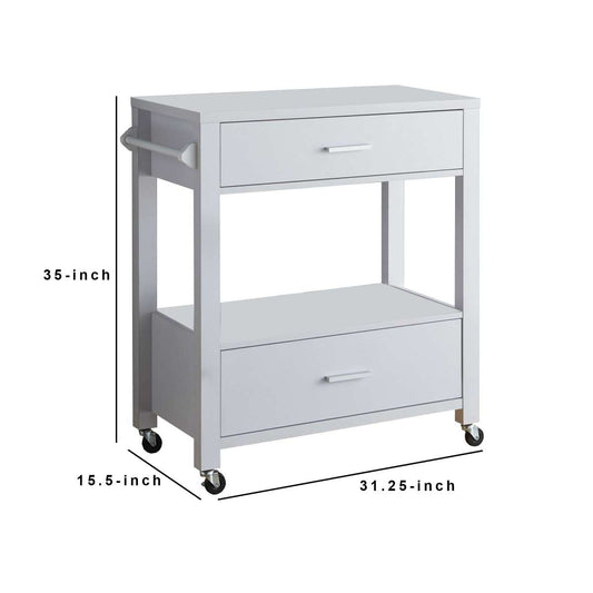 2 Drawer Wooden Kitchen Cart With Casters And 1... 2 Drawer Wooden Kitchen Cart With Casters And 1 Open Shelf, White By Benzara