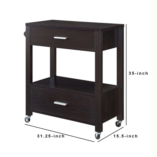 2 Drawer Wooden Kitchen Cart With Casters And 1... 2 Drawer Wooden Kitchen Cart With Casters And 1 Open Shelf, Dark Brown By Benzara