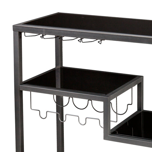 Contemporary Style Metal Bar Cart With Tempered... Contemporary Style Metal Bar Cart With Tempered Glass Shelves, Gunmetal Gray Black By Benzara