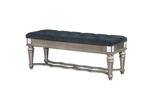 Traditional Style Solid Wooden Bench with Tufte... Traditional Style Solid Wooden Bench with Tufted Seat, Silver and Blue By Benzara