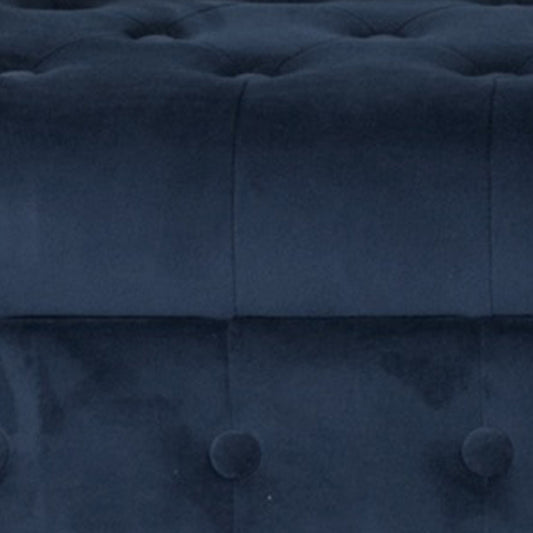 Velvet Upholstered Button Tufted Wooden Bench S... Velvet Upholstered Button Tufted Wooden Bench Settee With Hinged Storage, Dark Blue And Brown By Benzara