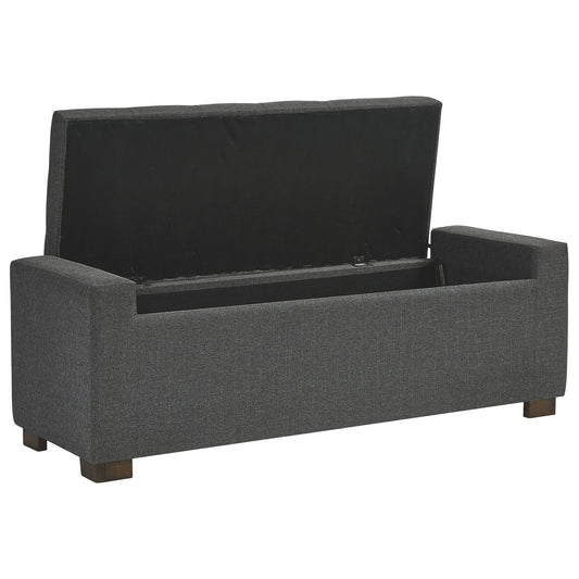 Fabric Tufted Seat Storage Bench With Block Fee... Fabric Tufted Seat Storage Bench With Block Feet Dark Gray By Benzara