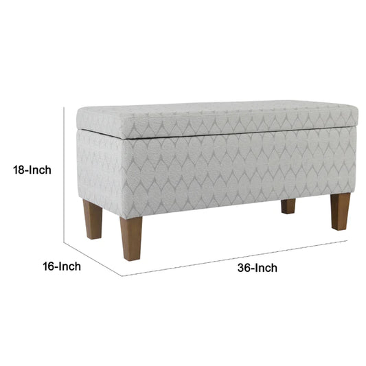 Chevron Patterned Fabric Upholstered Wooden Ben... Chevron Patterned Fabric Upholstered Wooden Bench with Lift Top Storage, Gray By Benzara